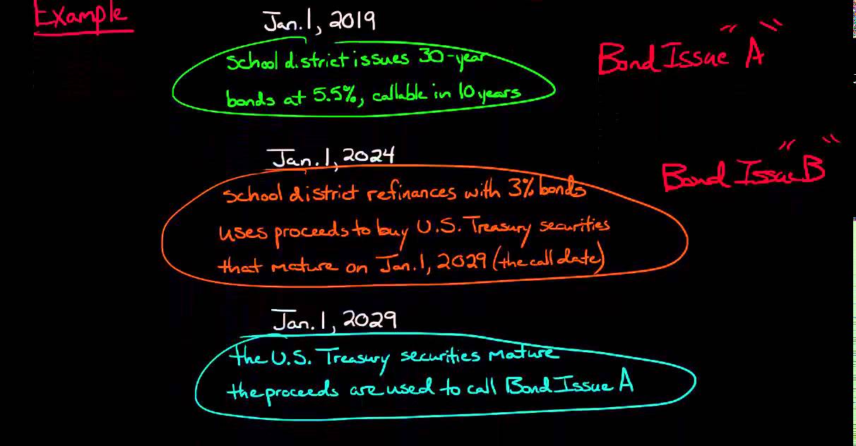 This results in most calls occurring during a time when interest rates are low. The bonds in escrow come due on the pre-refunded date and represent the ultimate in safety. Escrowed or pre-refunded municipal bonds These old bonds are referred to as escrowed municipal bonds or pre-refunded municipal bonds.
