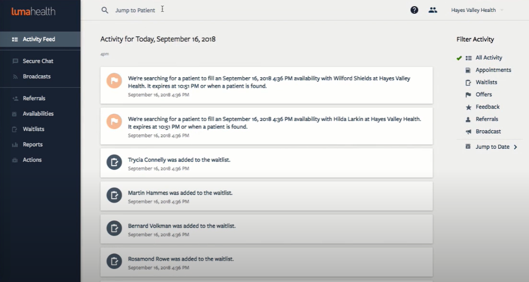 Entdecke kostenlose Live-Demos und vergleiche Luma Health mit ähnlichen Programmen. The appointments that do get cancelled either in ample time or last minute Lumas waitlist feature is a lifesaver. Luma Healths powerful engagement engine is simple for patients and flexible for clinics and health systems.